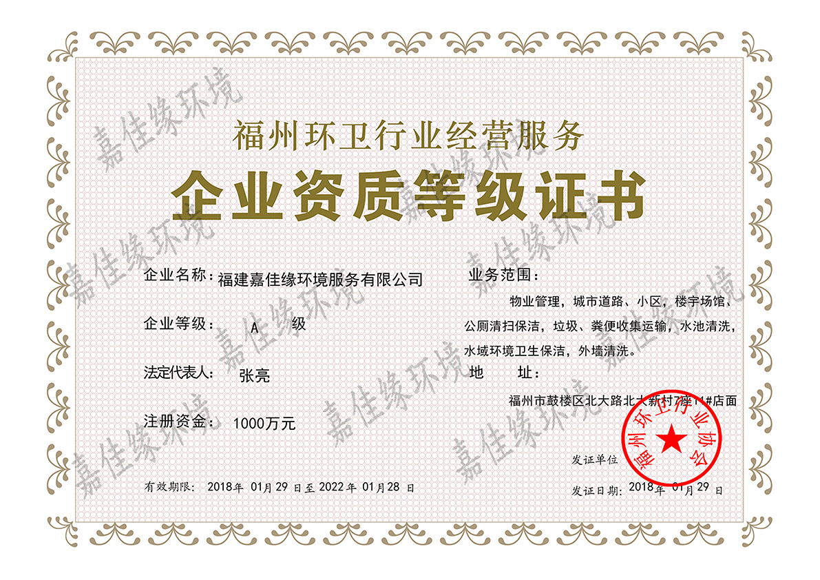 福建嘉佳緣環(huán)境服務(wù)有限公司秉承信譽(yù)第一、品質(zhì)保證、價(jià)格優(yōu)惠的服務(wù)理念,擁有經(jīng)過(guò)專(zhuān)業(yè)培訓(xùn)的服務(wù)隊(duì)伍、先進(jìn)的相關(guān)設(shè)備、無(wú)微不至的服務(wù)態(tài)度,深受省內(nèi)外客戶(hù)的好評(píng)。公司前身為福州嘉佳緣保潔服務(wù)有限責(zé)任公司,公司自2015年成立以來(lái),經(jīng)過(guò)不斷發(fā)展壯大,業(yè)務(wù)經(jīng)營(yíng)范圍從保潔服務(wù)逐步擴(kuò)展到環(huán)境綜合...
