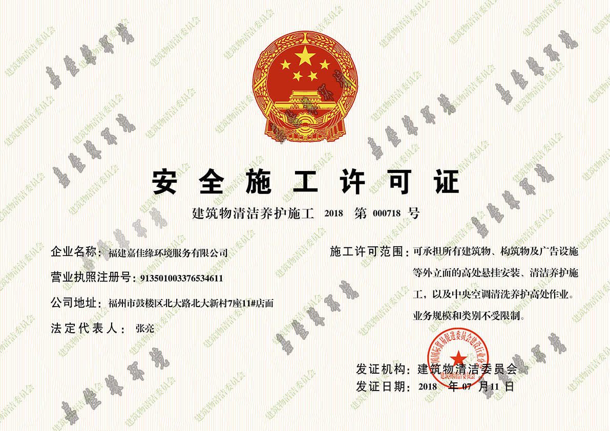 - 建筑物清潔養(yǎng)護(hù)施工企業(yè)資質(zhì)證書(shū)