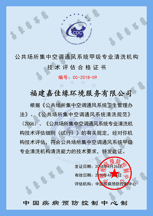 - 中央空調(diào)甲級(jí)專(zhuān)業(yè)清洗證書(shū)